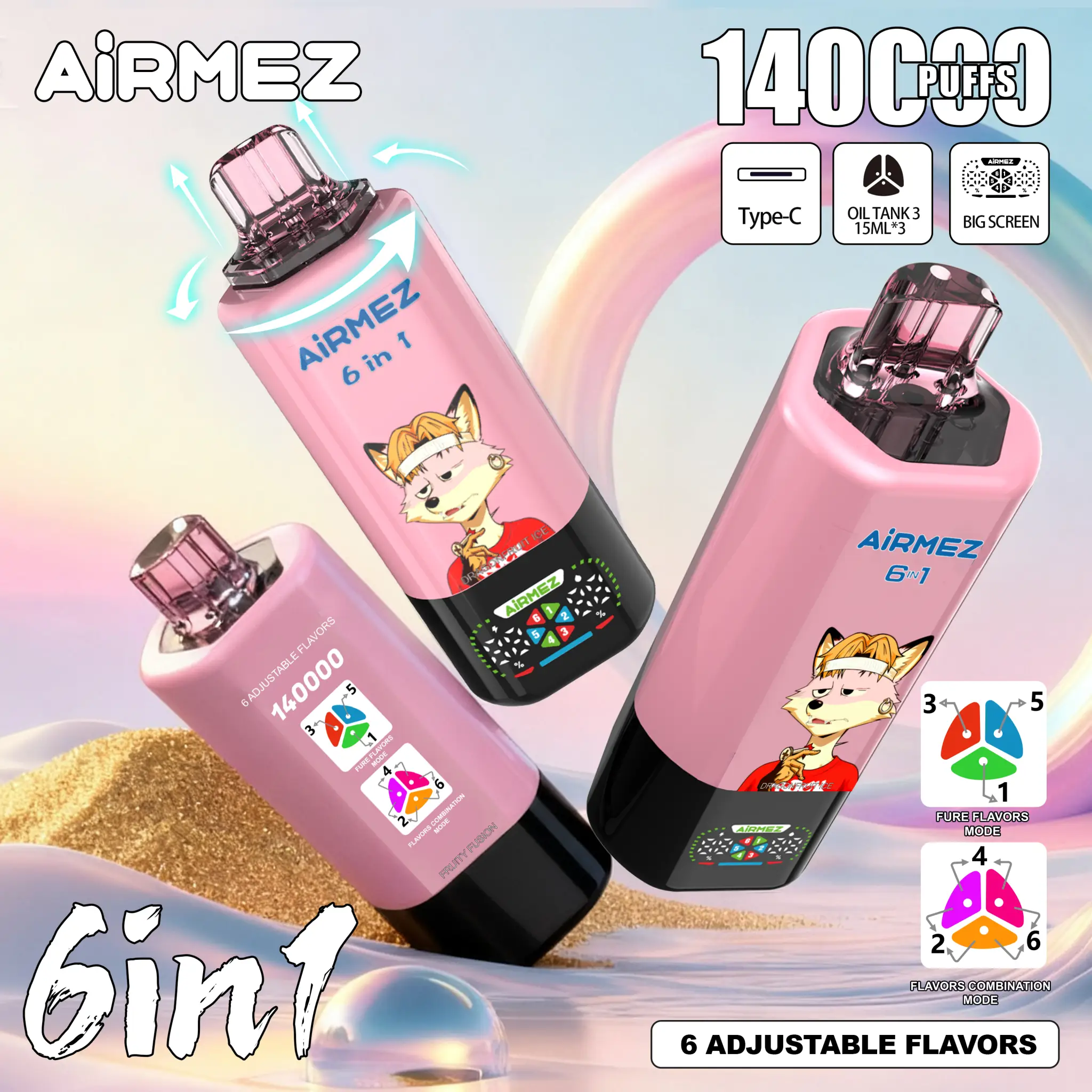 Airmez FOX 6 u 1 140K Puffs Jednokratni Vape – Veleprodaja