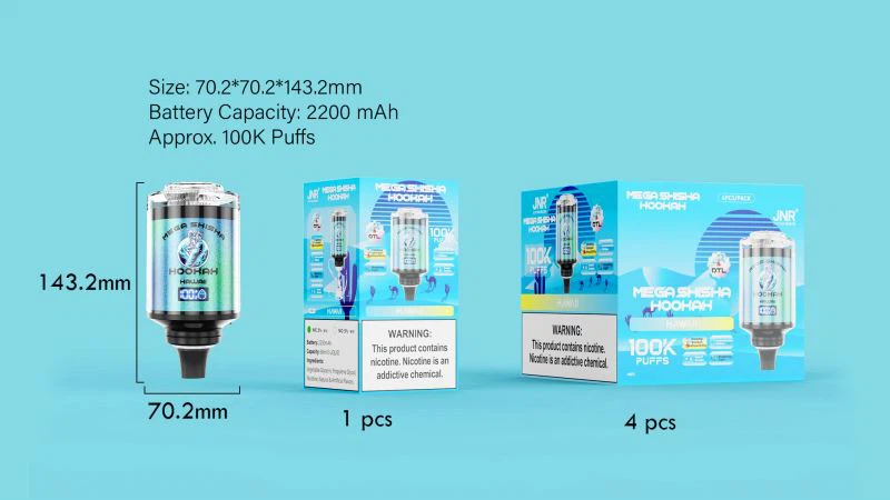 Uronite u svijet luksuznog vapinga uz JNR Mega Shisha 100000 Puff, najnoviju generaciju LED vape uređaja koji spaja moderan dizajn, visok kapacitet i jedinstveno shisha iskustvo.